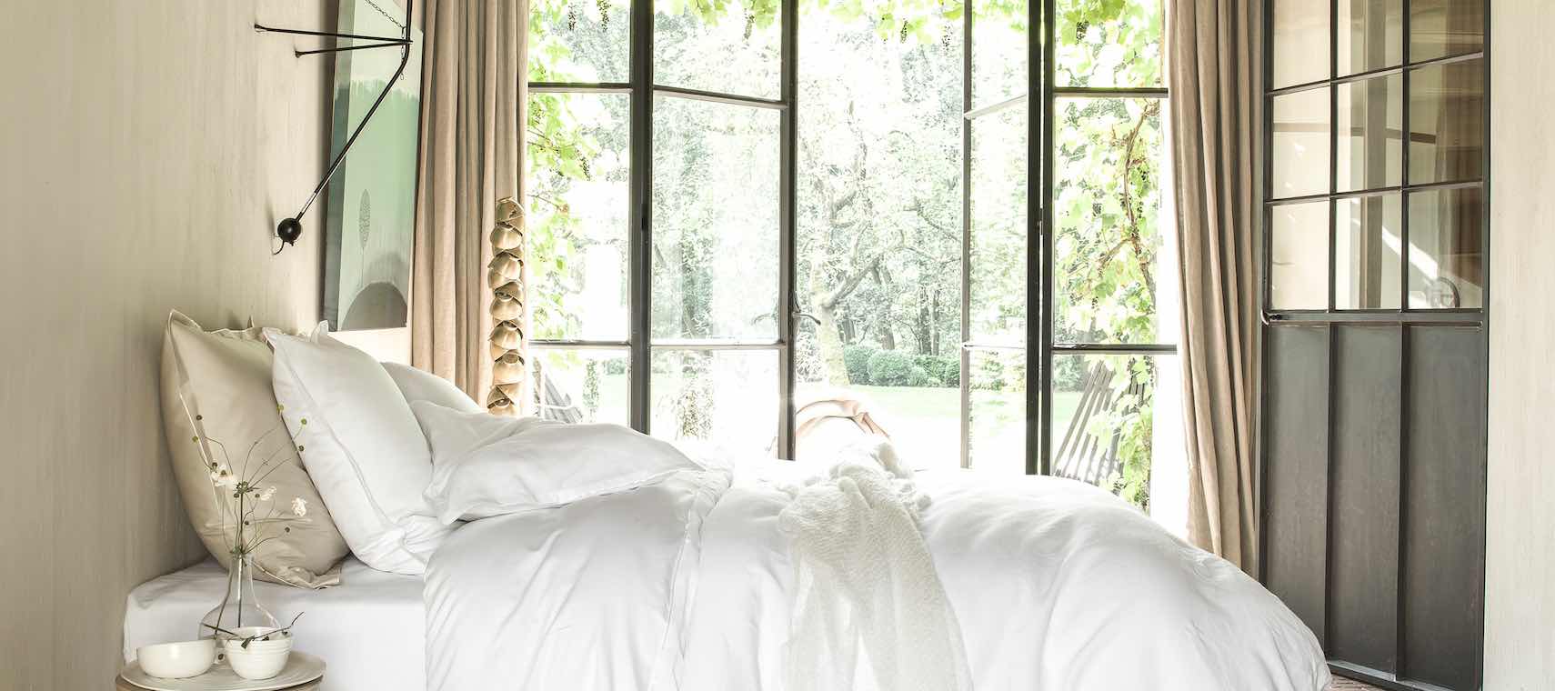 Our pure linen 100%made in France offers a greater resistance over time. Our Linen and Cotton combines European linen and cotton for a pleasant feel and easy-care. Our top quality cotton comes from Egypt, the best source and has 305 TC/inch2 for plain dye and printed sateen and 396 TC/inch2 for jacquards. Our 200 TC/inch2 cotton percale bene ts from an Easy-care treatment.